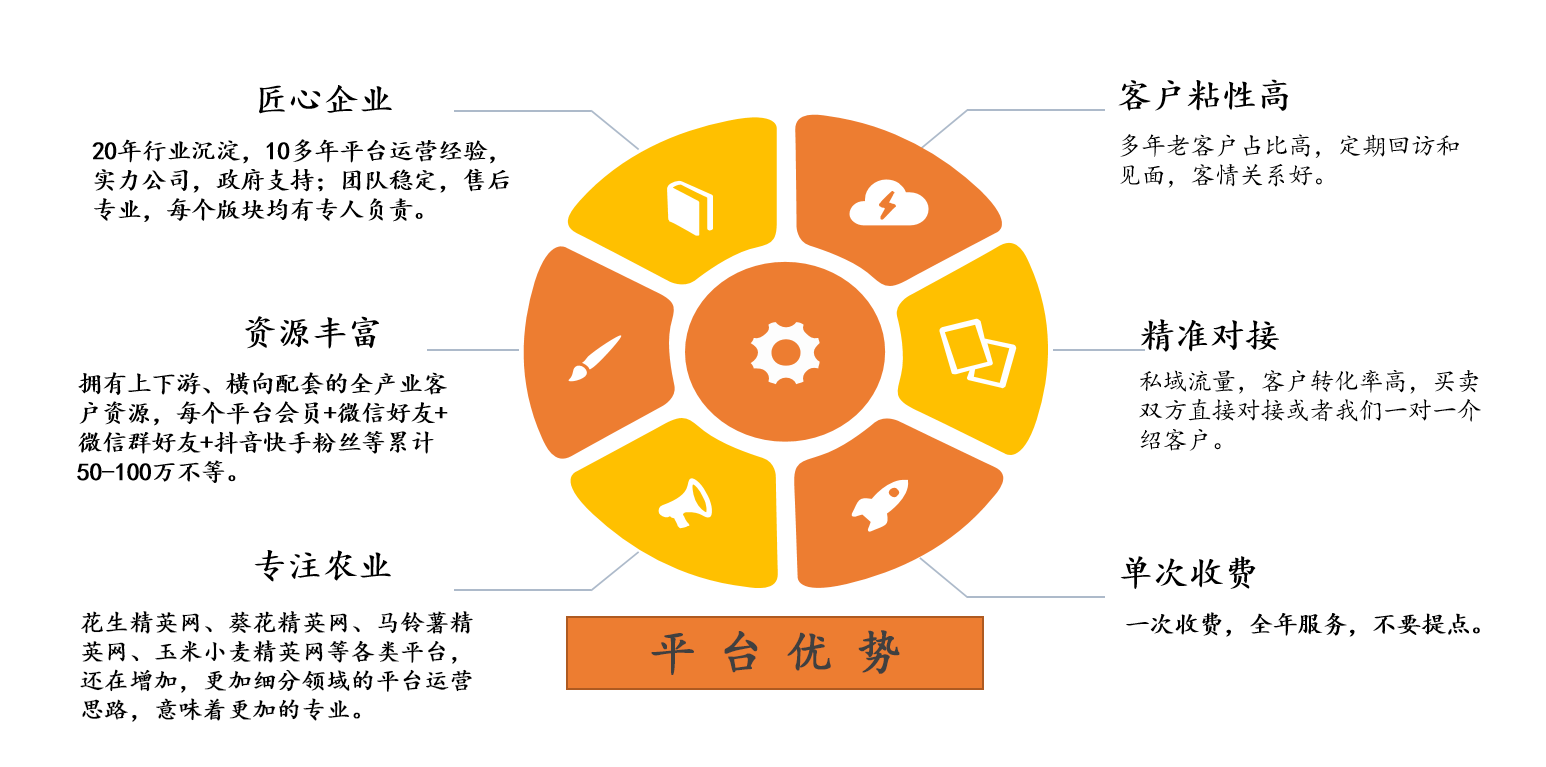 为农产品行业客户提供从供求发布、行情报价、网络推广、客户对接,到线上交易的垂直B2B平台